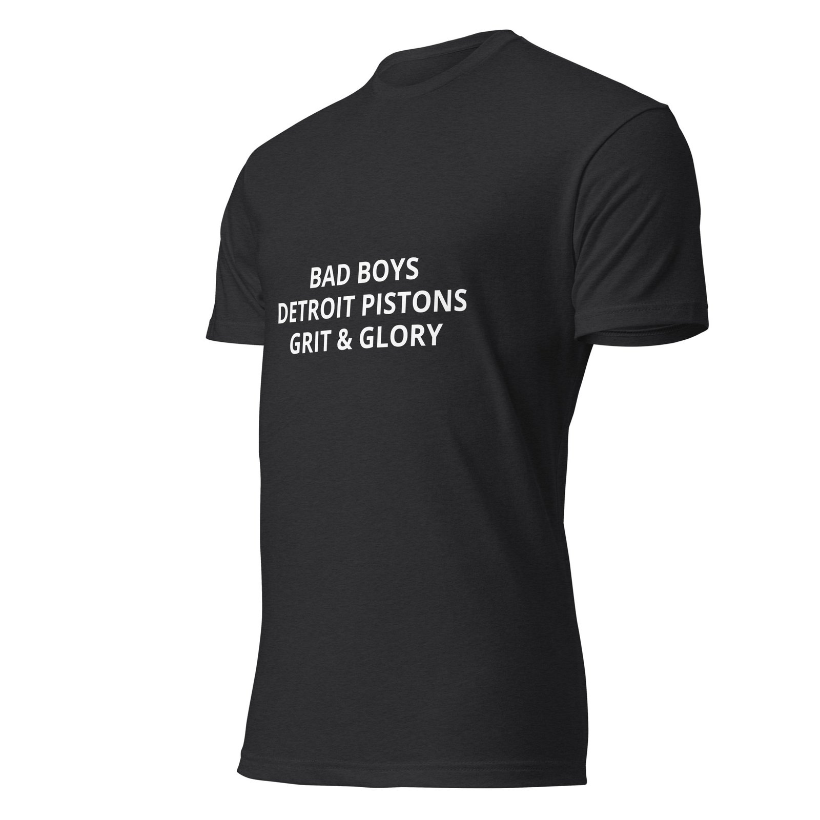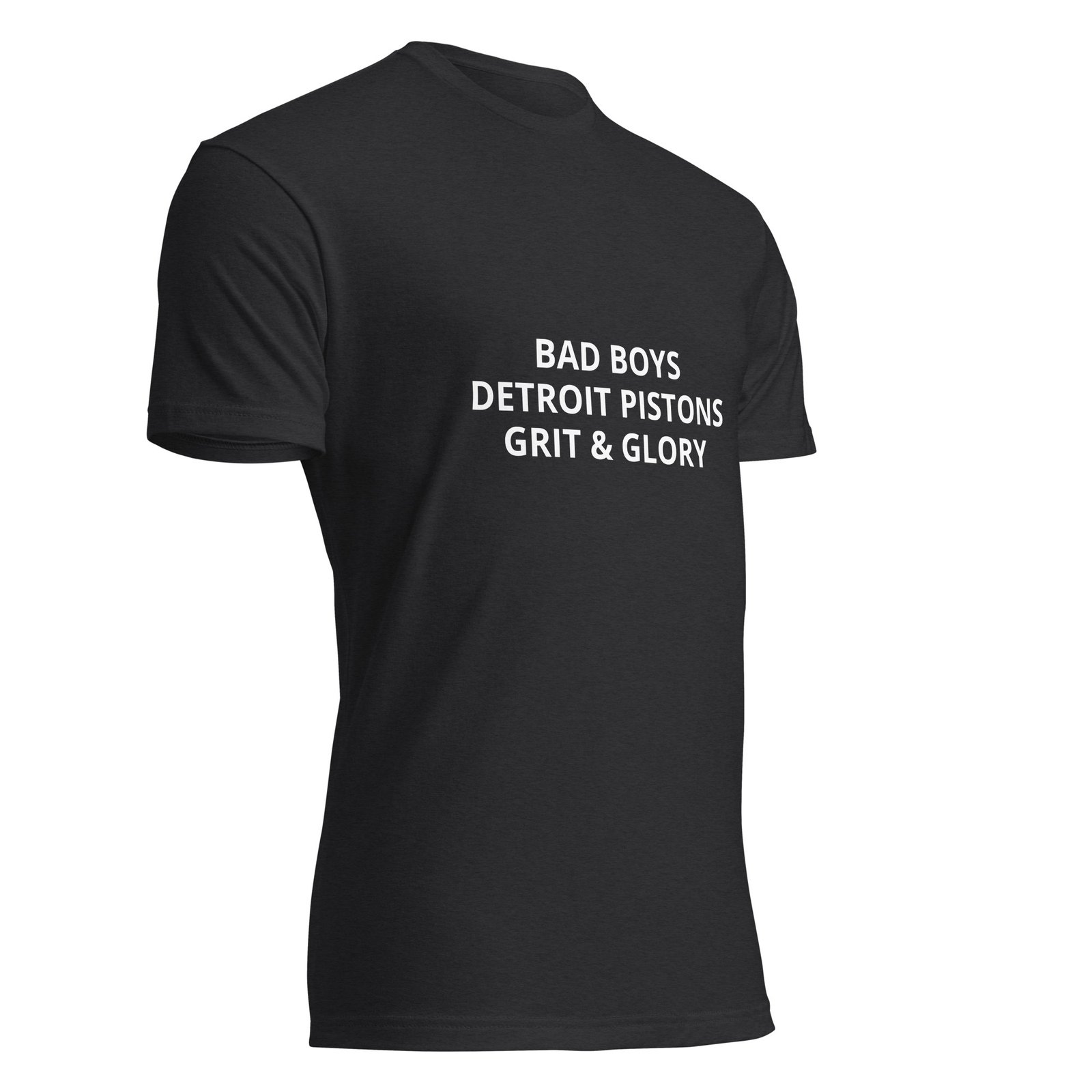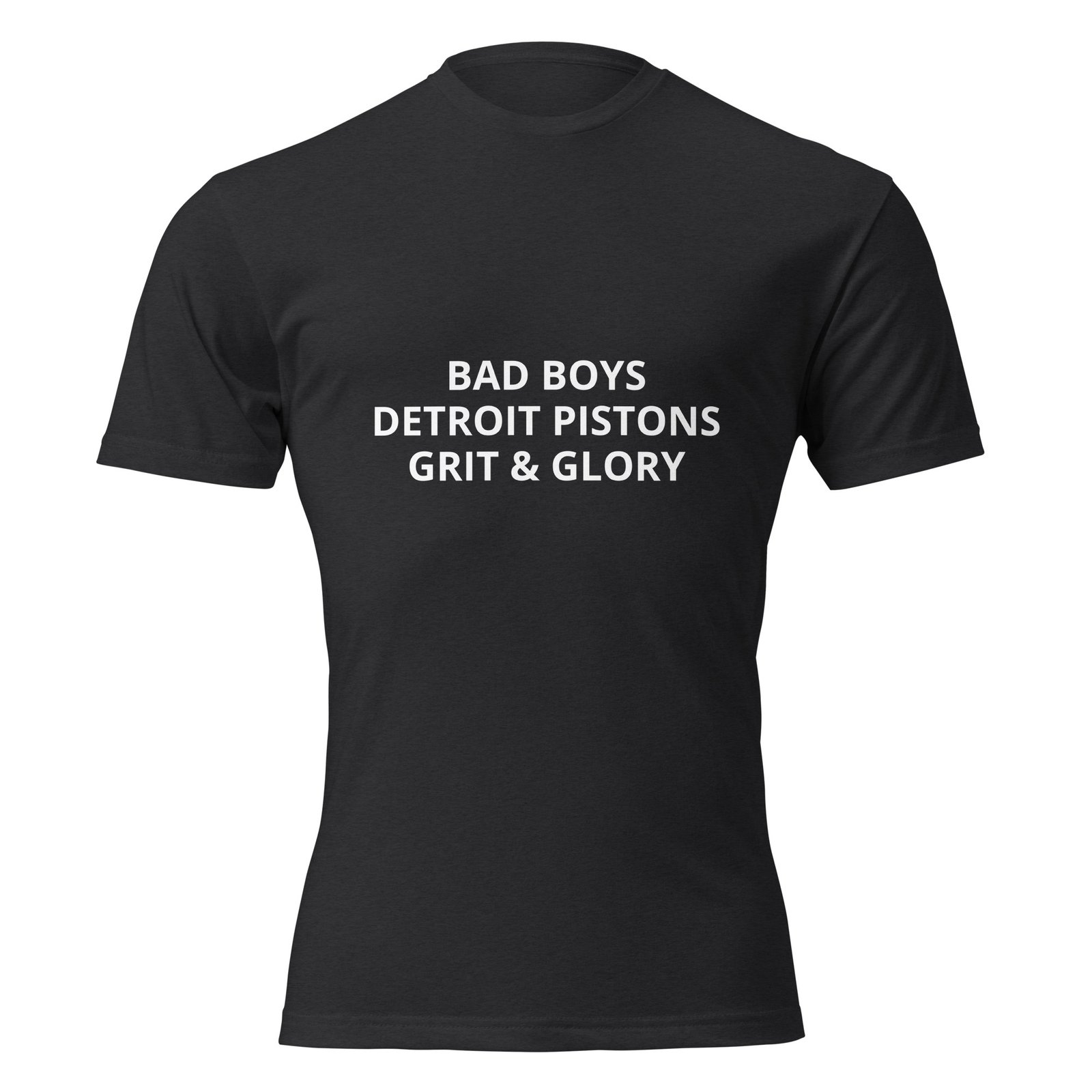 Represent Detroit’s legendary Bad Boys era with this throwback tee. Bold white text on a classic black shirt — a tribute to the grit, toughness, and championship spirit that defined Detroit Pistons basketball.